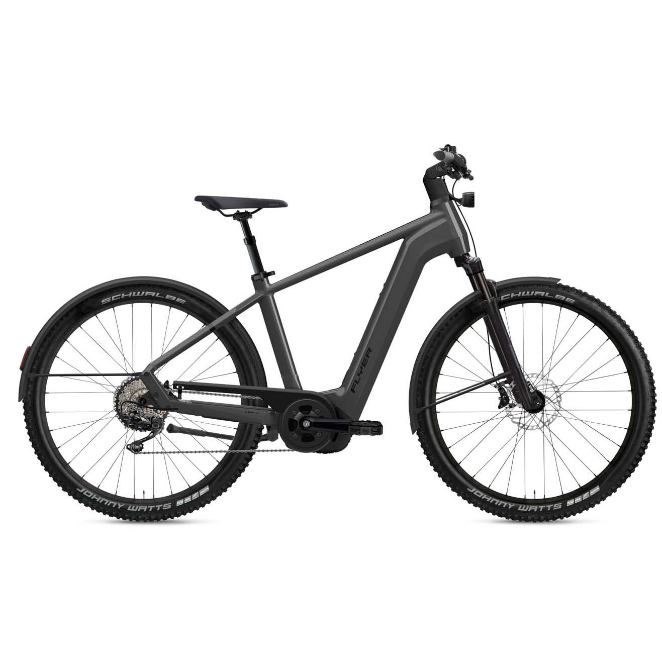 Die aufrechte Sitzposition, kombiniert mit einem bequemen Sattel, ist auf ein besonders angenehmes Fahrgefühl ausgelegt. Damit können Sie unzählige Stunden auf dem Bike verbringen. Bei der Ausstattung haben Sie die Wahl zwischen Enviolo-Nabenschaltungen mit «Gates Carbon Drive»-Antrieb oder Shimano-Kettenschaltungen. Für maximale Sicherheit ist das Gotour auch mit dem neusten Antiblockiersystem (ABS) erhältlich. Ganz praktisch sind ausserdem die mit Seitentaschen kompatiblen Gepäckträger, die Schutzbleche sowie die kräftige und formschön verbaute FLYER Beleuchtung.